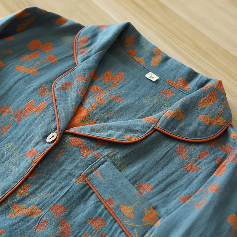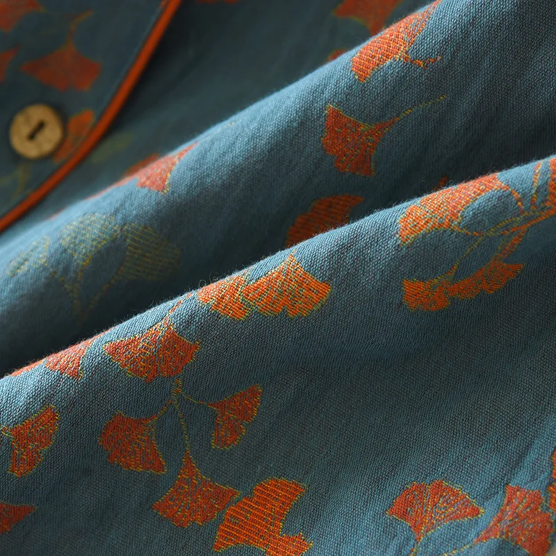 Cotton Jacquard Long Sleeve Pants Two Piece Furnishing Pyjama