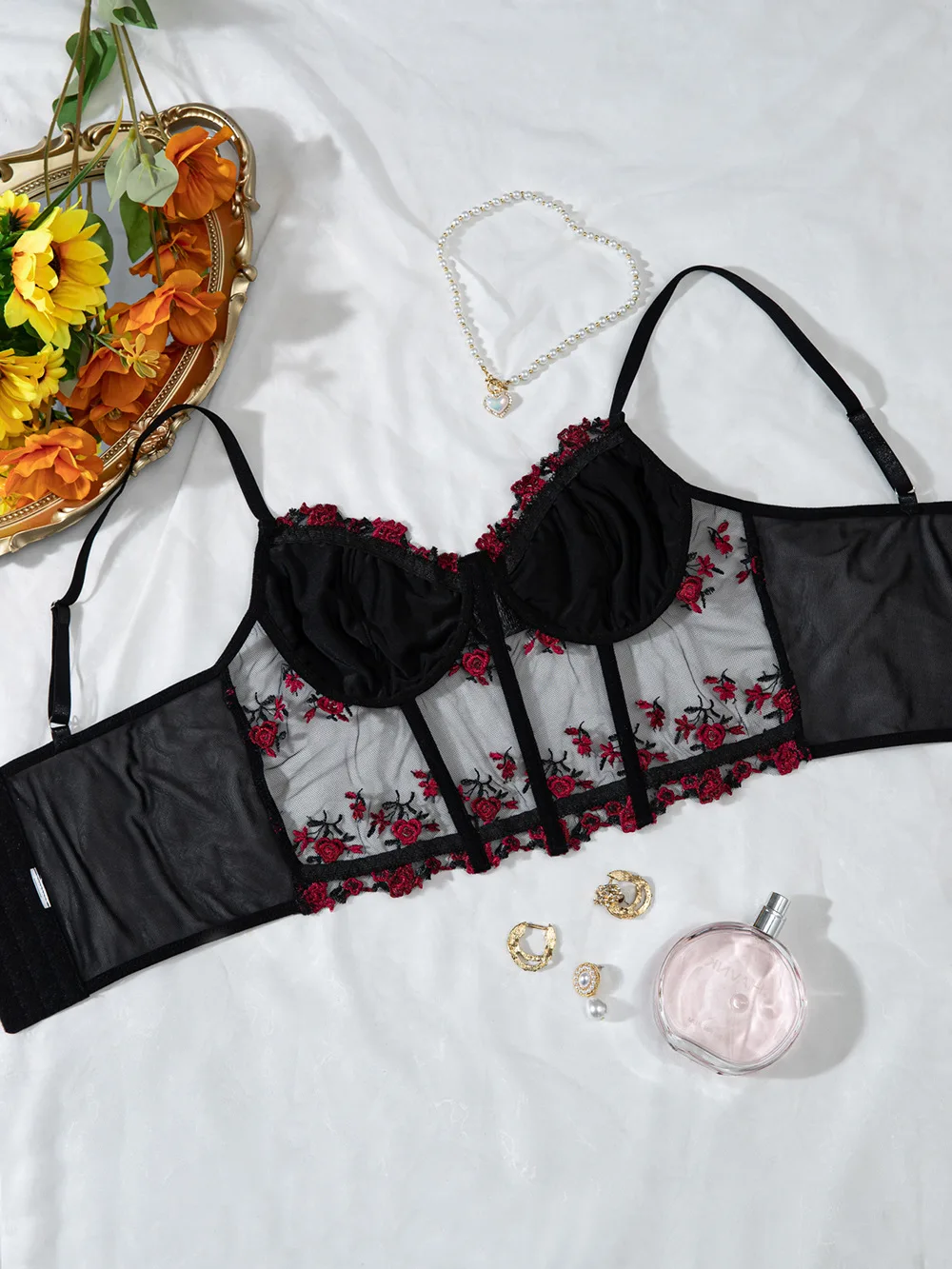Embroidered Floral Fishbone