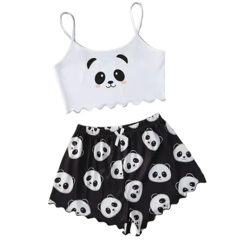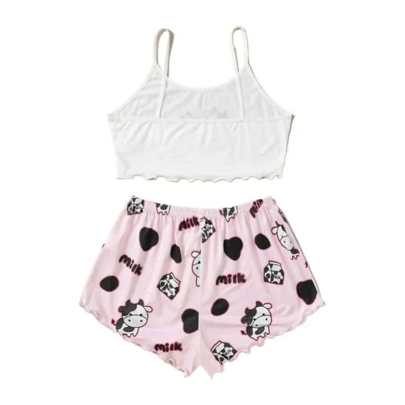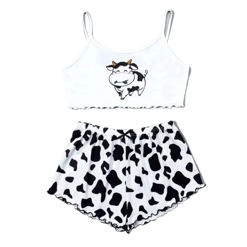 Women 2 Pieces Pajamas Cute Cow Top and Shorts Sleepwear Homewear